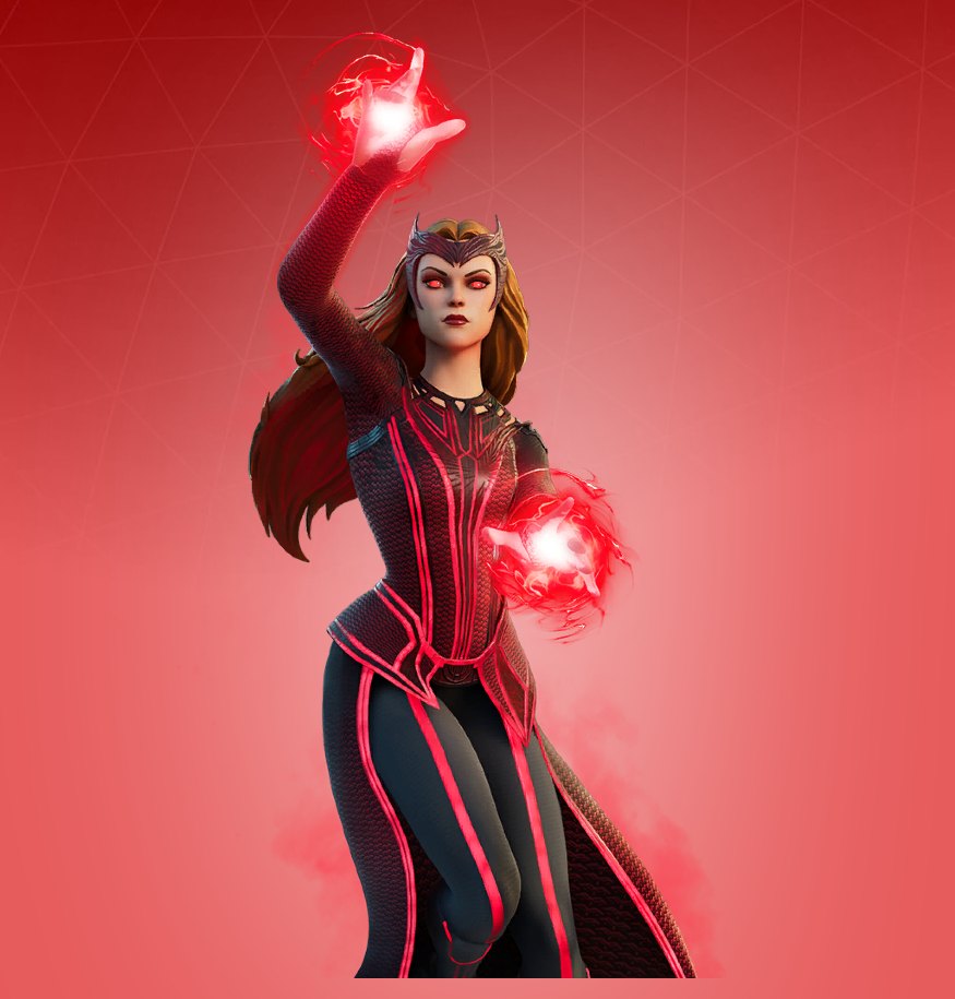 The Scarlet Witch Skin is a Marvel Fortnite Outfit from the Scarlet Witch set. It was released on May 6th, 2022 and was last available 14 days ago. It can be purchased from the Item Shop for 1,500 V-Bucks when listed.