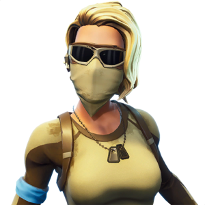 Scorpion is the female version of the desert camouflage themed skins. It appears to depict a military unit that is stationed in the desert with the tan camo and the mask/glasses to keep sand and dirt out of the mouth and eyes. There's also a male version called Armadillo.