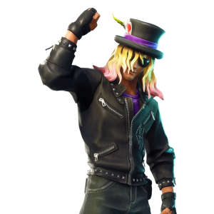 Stage Slayer is the male version of the Epic rocker skins. He reminds me a lot of Slash from Guns N' Roses who was famous for the hat and sunglasses being worn by this skin. The big difference is Slash has always had black hair and this skin is rocking the blonde look.