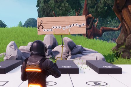 The Pleasant Park one is way easier than the Lonely Lodge version. To complete the challenge, you need to jump on each note as listed on the sheet. You have to be careful not to hit any of the other notes. Once you've completed it correctly, the piano will continue to play the song on its own.