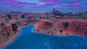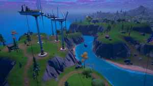 Windbreakers are an unnamed landmark located on the south-western edge of the map, far south of the Greasy Grove POI. This small island has six huge metal Windbreakers which players can get on with ziplines. You will find a ton of metal objects in this area to harvest and complete the Quest. Similarly, the Rustaway Shores landmark is located on the southern side of the map, west of Chonker's Speedway POI. You will find this area has several rusted cars which can be harvested for metal.