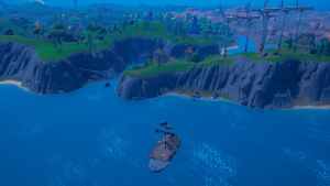 To complete this quest quickly, land at one of the boathouses west of Camp Cuddle or at the Minnows landmark, located on the beach west of Greasy Grove. Get on the motorboat and drive West to reach the Adrift landmark first. Players will find the broken Drift arm of the Mecha from Fortnite Chapter 1.