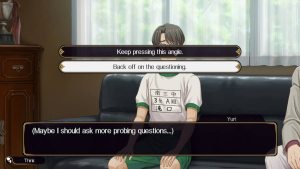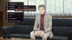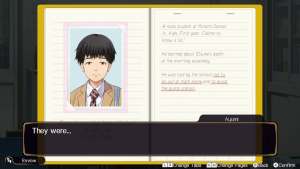 When speaking to Kohei, make sure to "Back off on the questioning" or you will spook him from saying more. Outside of the middle school, you will hear voices; make sure to use Look/Observe on the right part of the screen where the two girls are hiding behind the fence. After this, you will go see Yoshie. She will offer you a photo of Makoto; you have the choice between all four pictures, but there doesn't seem to be a difference in which you choose. I chose the one in the bottom left of him at the middle school entrance ceremony in front of the cherry blossom trees. Select Kimiharu Kamada from the list to go visit him at the police station. You'll receive a call at the end of the chapter, make sure to pick it up.