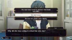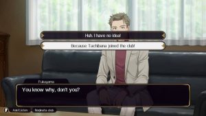 During this chapter, you will need to question the murder victim's friend, talk with some other middle school students, and then visit Yoshie at the retirement home. While speaking to Fukuyama before speaking with Kohei, he will ask you questions about Ayumi. For the answer to his question, choose "Because Tachibana joined the club!" After that, make sure to Show Fukuyama your Superior friendship with Ayumi.