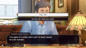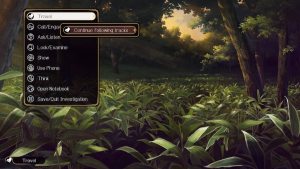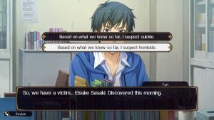 This will begin an interaction with a new character. Use the Look/Examine function to look closer at Kuze. In order to properly interact with all your surroundings and get all the clues, you will want to make sure to completely exhaust all dialogue and informative sections in the interacts menu. Once you have finished all the interactions, you will finish the tutorial section and start chapter 1.