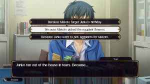 In the library, you will need to check out the newspaper articles from 18 years ago in order to go over the previous murders that are possibly connection with this new one. Check over all the books, then look them again to get all the extra information. When you have to answer the question of when Makoto disappeared, the answer is "July." At the end, you will need to review you information you learned.