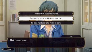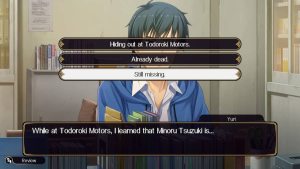 Choose to call Utsugi back, and select "Yes." After you get to the deliquent center, you will want to choose "Yes, I do" when talking to the councilor. When you get the option to choose what you think Minoru liked about Todoroki Motors, choose the second option: "He liked the name "Todoroki."" The rest of this chapter will be cutscenes.