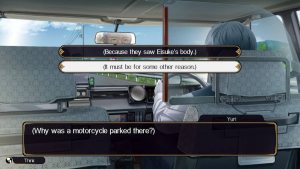 In chapter 2, you will finally catch up with Kamada at the police station. He will ask about the critical difference between the killings, and your answer should be "The victims were killed in a different manner." He will give you permission to scour the crime scene. Look around, then chat with Kamihara. He will leave you waiting for the bus. When you get the option to use your phone, select "But the battery." If you try to use the phone, it will die. Once inside the cab, select "It must be for some other reason." Make sure to listen to the cabbie's story by choosing "Let's hear it."