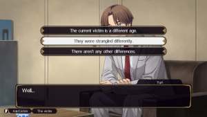 This will give you the ability to head to the police station to ask some more questions. You'll need to speak with Detective Kamihara at length about the Smiling Man and the murders from 18 years ago. When he asks you a question, answer with "They were strangled differently." Back at the agency, you and Ayumi will go over what you learned that day. The answers are: