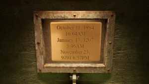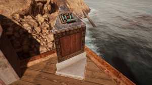 - If the orange line is pointed to the sunken ship, the plaque inside the tower will have three dates and times to input into the round building next to the library that has a golden carving on the door and a weird chair inside it. Once you have the answers, you need to line them up with the items around the mini sunken ship in the middle of the island.