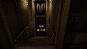 - Go back up the stairs, then press the red button in the hallway to make the stairs turn back into the hallway's floor.