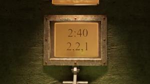 In Classic Myst, you need to make the clock read 2:40 (Randomized). The three-digit code is 2,2,1 (Randomized). In order to get the mechanism inside the clock to read 2,2,1, you will need to hold down the levers. The left lever makes the middle and bottom numbers move, and the right lever moves the middle and top. To solve it, pull the left lever once, then pull and hold the right lever for three counts, then pull the right level once. This should make 2,2,1 on the mechanism and open up the giant gear on the docks.