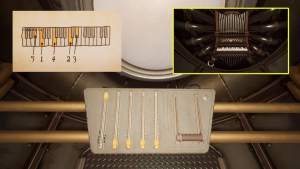As stated above, I am tone deaf, so this puzzle is impossible for me unless I count the lines on the sliders and the keys to determine where to put the sliders. For the classic answer, the first key is eight notes from the bottom, the second is 20 notes from the bottom, etc. This makes this puzzle a lot easier. If you do it on the first try, you will get an achievement. After you complete this puzzle, the linking book to the Selenitic will appear.