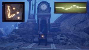 - If the orange line is pointing to the giant gear on the dock, the answers will be to the time needed to get across to the clock and Marker Switch out on the water, as well as the code needed for the puzzle inside the clock.
