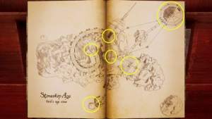 In order to get to this Age, you need to turn the orange line on the map in the library to point at the giant gear on the dock. When you climb the tower, you will get a time and a three-digit code. Input the time into the clock, then input the three-digit code into the device in the clock building.