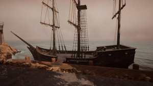 To get to the Stoneship Age, you need to raise the sunken ship that is next to the dock on Myst Island. In order to do that, you will first need to turn the orange line on the Myst library map to point at the ship, then you will need to climb the tower. The plaque will have three dates and times on it; you need to take note of these three in order to complete the next step.