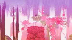After Neva helps Broma up onto the platform they jump across, there will be a bunch of white pillars and arches you will walk through. Underneath it is a pink tree. If you stand in from of it, the main character will begin to sing.