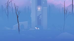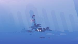The next flower collectible in Fall is along the path you need to follow to get through the game. Look to the left of this platform; there is a collection of interactive, disappearing platforms. Use Neva's throw to keep them from collapsing, then hop around to the left and up to the platform with the flower.