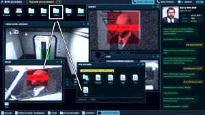 Agent Andrews is coming to your building to find the location your surveillance feed is going to. HAL gives you access to the security cameras on the 11th floor (image #1), where Andrews will be navigating. You'll be providing your help.