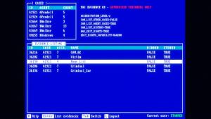 Once you've authenticated yourself, push H for help. This will bring up HAL who will walk you through every step of the evidence room process. Cases are listed by the name of the agent in charge (image #1).