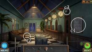 - a2. In the fireplace hangs one of four keys you'll need to leave this first room.