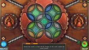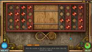 The clue for this puzzle is in the owls on the previous screen. Click all four owls and their eyes will light up, showing you the correct order to click the yellow and red gems in. For my game, this order was (as shown above): red red yellow yellow red yellow yellow red.