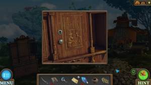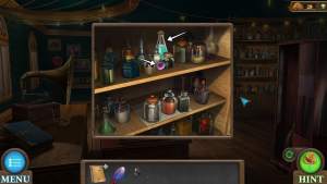 One last return to the cabin, and it's finally time to address the mysterious numbered bowls on the left side of the room. At the top of the cabinet, use your key to pick up three empty bottles.