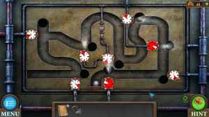The ball starts in the very top of the puzzle. This is a gravity puzzle, as every time you move a piece out of the way, the ball will automatically try to fall as far as it can, regardless of where you would really rather it go.