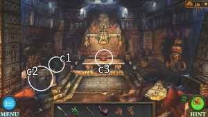 - a5. The mask above the chest contains a ruby eye. Click this eye to extract it.