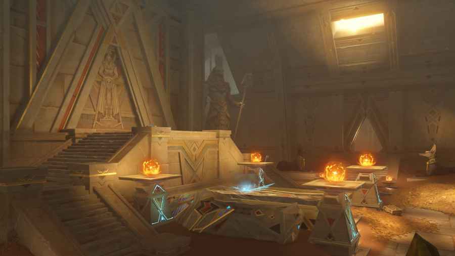 The remaining torn pages are all underground, so we've included additional maps for them. This torn page is found in the lower part of King Deshret's Mausoleum. Starting from the Mausoleum's entrance, proceed forward, then drop down the hole in the ground just before you reach the room with his tomb in it. You'll see an obelisk and one of the Primal Constructs: Reshapers that you need to fight for a Glittering Ember. There is an alcove on your right where the torn page you are looking for is laying on a treasure chest. It's just for decoration, too, unfortunately.