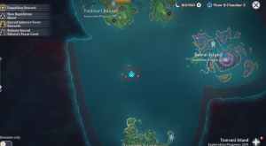 To unlock the Moshiri Kara Domain released in the Genshin Impact 2.2 update, you first need to use the Waverider and sail to the island in the middle of the ocean. When on the island, you'll notice a giant stone pillar.