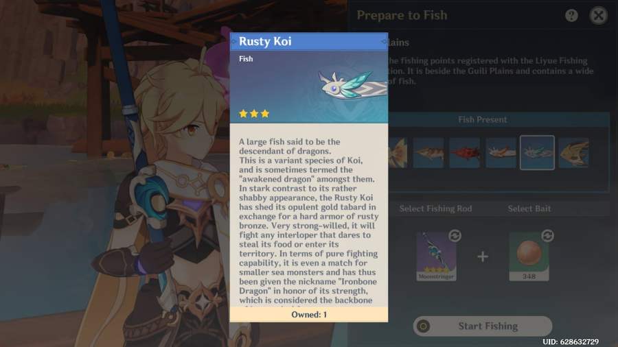 There are three areas players could fish for Rusty Koi in Liyue and they are all relatively close to one another. One is beside the Luhua Pool and can be fast traveled to easily. The second area is by Wangshu Inn, on the coast to the left of it. The final area is the Guili Plains, South of Wangshu Inn.