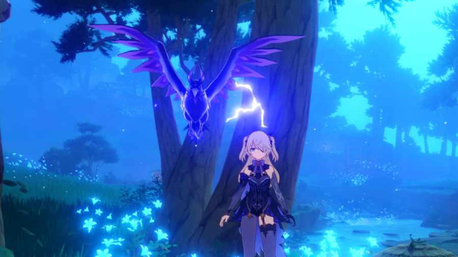 Where combat is concerned, Oz's wings are incredible assets that allow him to survey enemies from the sky, as he customarily does when ordered by Fischl. When necessary, Fischl can also merge with Oz and see through his eyes through the Midnight Phantasmagoria—her Elemental Burst.