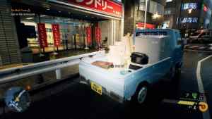Southwest of Shimokusa Shrine, you’ll find a gray truck. This is just outside a shop called Terry’s with a dog standing in it. Hop onto the back of the truck to get the relic in a blue box.