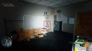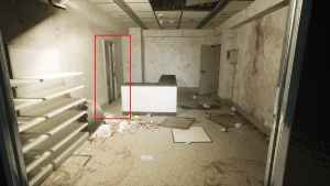Progress the mission until you have to turn the power back on to make the shutter gate open. Then, enter the room with the glass door into some fancy office with a green floor. When in this room, turn left to enter the office space, and enter the room on the left. Inside the first locker is the relic.