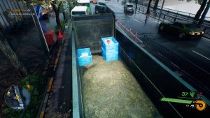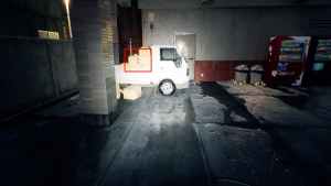 Head south down the road from the Antique Nekomata, and you’ll see a white van on your right leading to an alley. Head toward the blue boxes underneath the stairs to find the relic.