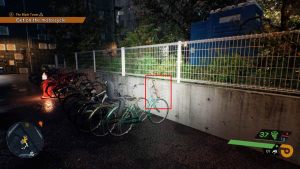 To the north of Akitsu Shrine, you’ll find a small park that’s pretty dark, with a Kuchisake Visitor patrolling the area. Defeat the Visitor to relight the area. Then, skirt the outside of the eastern side, and in last bike's basket is the relic.