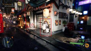 From the Toyoi Shrine, head east following the road until you hit the main road. You need to climb up to the rooftop, indicated by a red square in the image above. It’s the slanted rooftop before the billboard rooftop. Once on the roof, you'll find the relic.