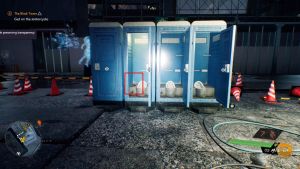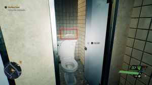 Carry on farther underground, and you’ll see some Ex-750 Ghost bike advertisements above. Go straight ahead, turn left, and enter the male toilets. On the right, open the stall with pants sticking out of the bottom and find the relic.