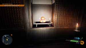 This relic is to the northwest of Kamio Shrine. You need to climb buildings, so having the Summon Tengu ability will be helpful. Otherwise, get on the main highway and head east from the Inro relic above until you see a yellow road sign. To the right of the sign, jump onto the building, and you’ll see the relic near some books.