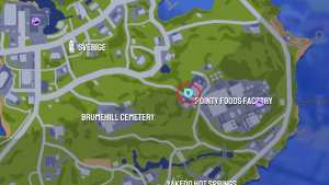 On the top of the right tower at the entrance of the Pointy Foods Factory.