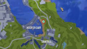 At the northern entrance of the Mtn Dudes Sawmill factory behind the Hoofer Dam.