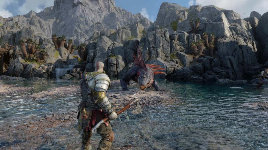 Dreki will also rely heavily on ranged attacks, spitting water, and later electrified water, at Kratos throughout the fight. These cannot be parried as successfully and should be dodged to avoid taking large sums of damage. Since the ranged attacks are relatively slow for a boss fight, they are easy to dodge.