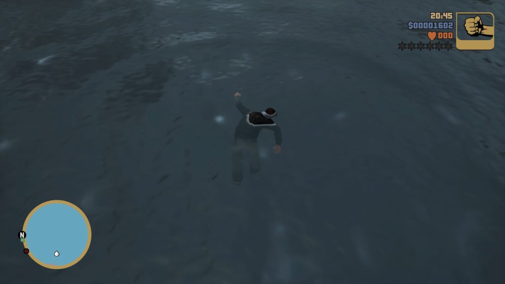 Unfortunately, that's still a no. If you attempt to jump into a deep body of water in this, the definitive edition of GTA 3, you will flail around hopelessly until you meet a sudden end. Due to portions of the map being locked for story purposes, Claude is landlocked in order to ensure the player progresses correctly... unless you use cheats, of course.