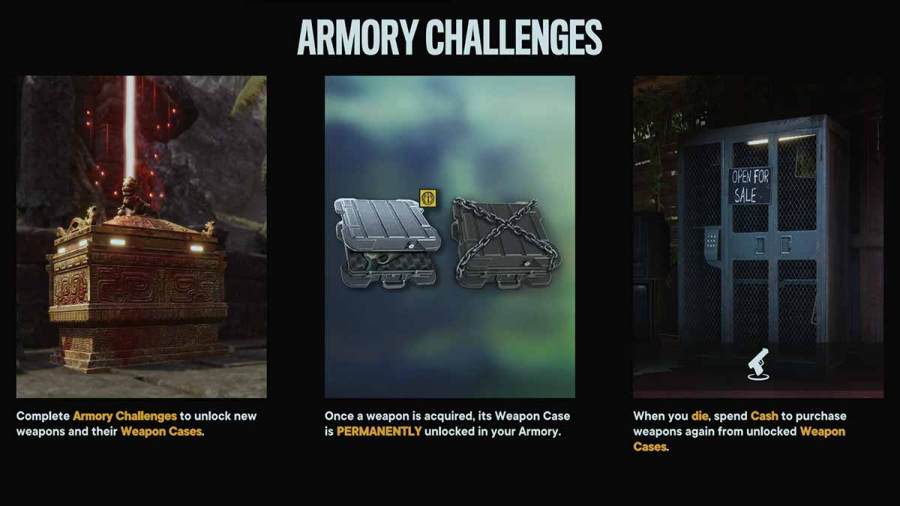 Successfully completing these missions will unlock specific Weapon Cases. You can then access and upgrade said weapon from the safehouse. You can complete the Armory Challenge for whatever weapon you want to unlock and try first.