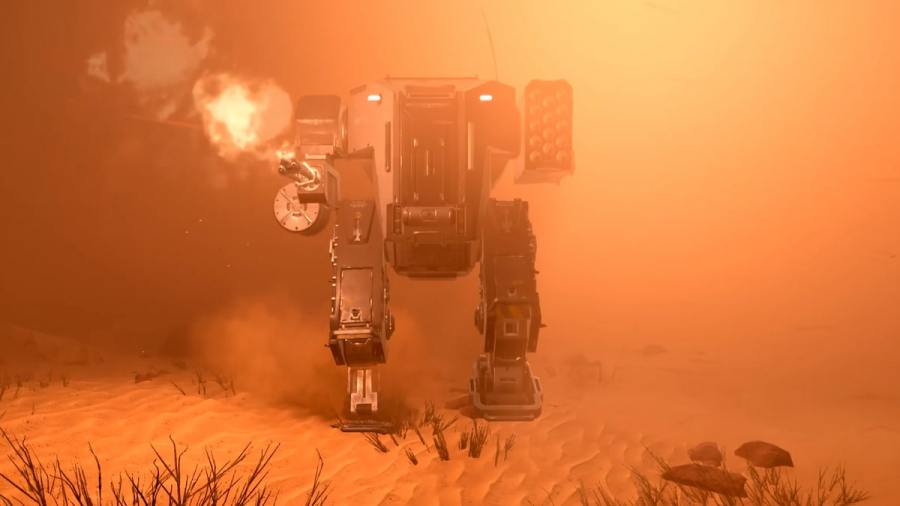 My hope is the extended time before mechs are available means they will feel as good as they did in the original Helldivers, and that we get a good variety. The mech seen is equipped with a mini-gun and what looks to be a missile launcher, but I wouldn't be surprised if they are customizable.