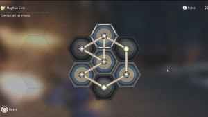 There is one broken-down helicopter in a mining tunnel that can be fixed via a Magflow Link Puzzle. The solution is pictured above. You'll need to click the right gear four times, the left gear three, the center gear three, and the top gear twice. Once fixed, interact with and follow the helicopter to a Bountiful chest with 20 Stellar Jade inside.