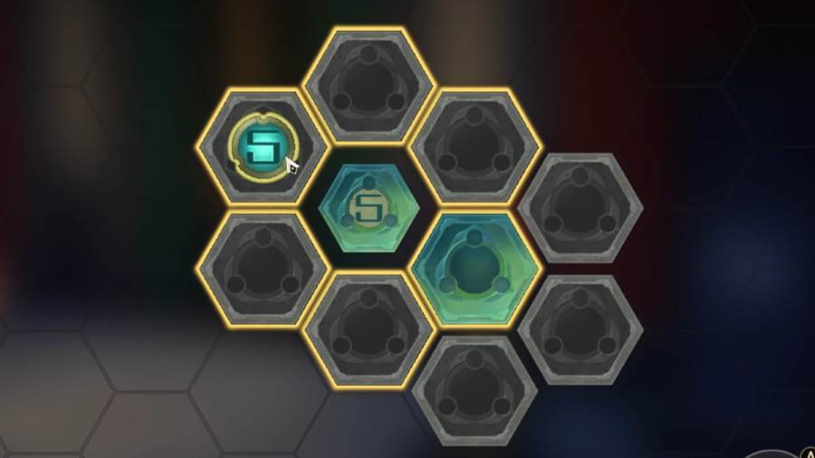 This time, the Mutare Magnus puzzle requires you to copy the shape of an hourglass. Start by picking up the object on the bottom right of the hexagon. Once that's done, put it down on the rightmost part of the layout, pictured above.