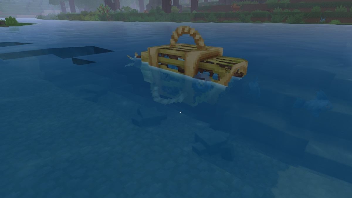 - Place a Fish Trap in a quick slot, equip it using the corresponding number key, and right-click to place it in any body of water.