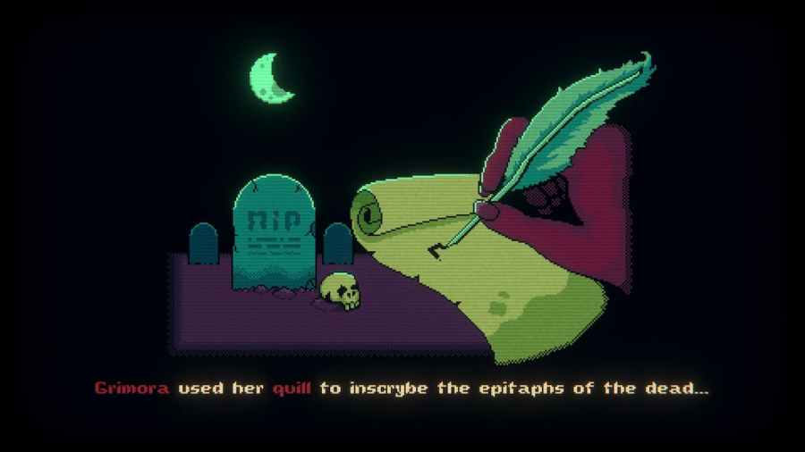 Grimora utilizes the cycle of life and death as the player battles her. In her first phase, she will create an epitaph for each of her cards that is killed. Each card the player kills will return in a few turns in the same space it was previously. Of these, players should prioritize killing the Sarcophagus before it evolves.